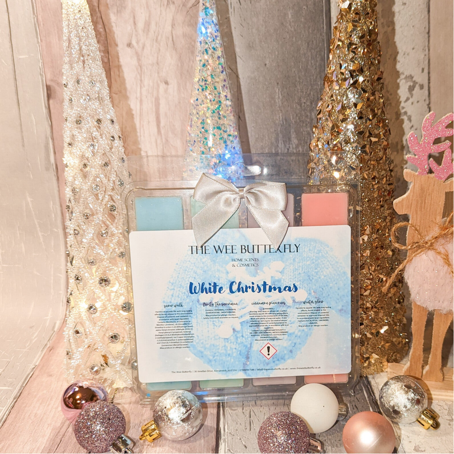 I absolutely loved creating these Christmas Collections, each clamsell holds approx 120g of wax, and has 3 melts in each scent. All are beautifully finished with a hand tied bow!